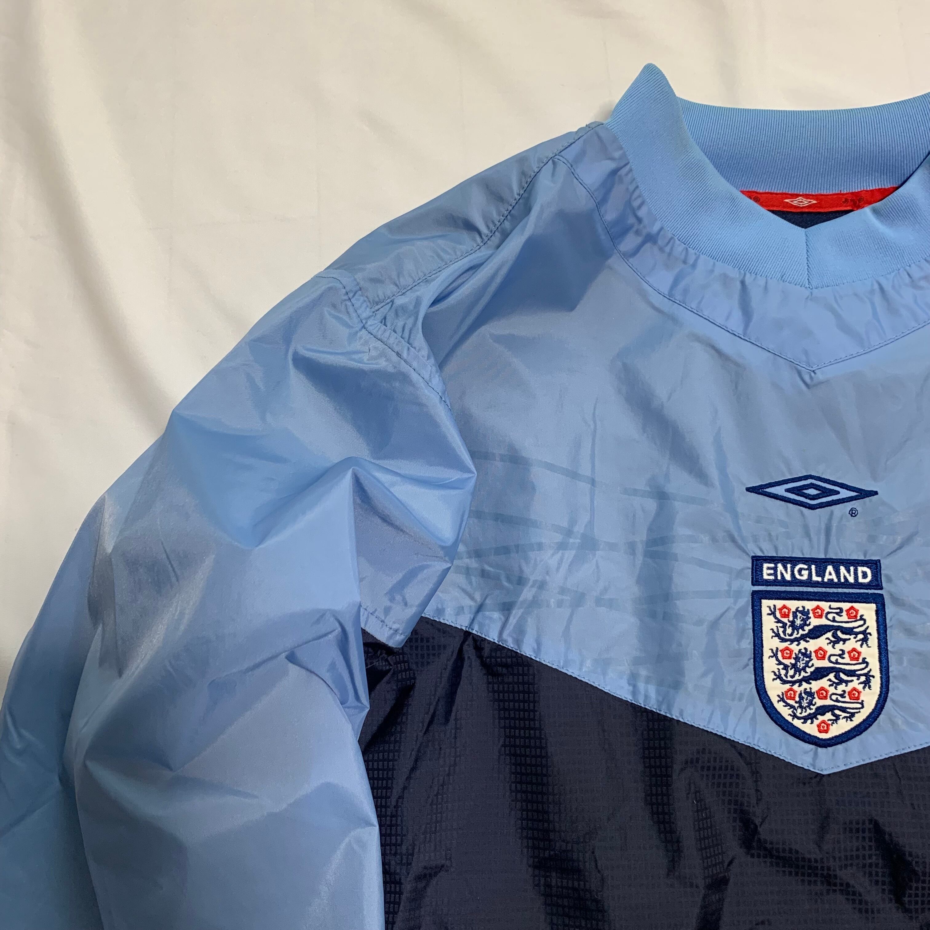 90's OLD UMBRO オールド アンブロ ENGLAND イングランド代表 ナイロン プルオーバー サッカー ベッカム オーウェン used 古着 L