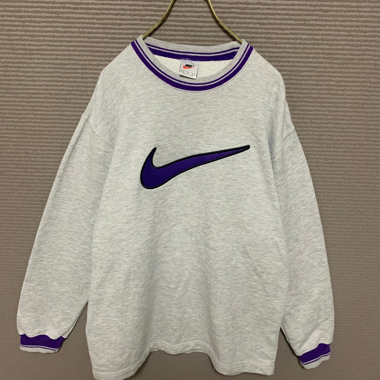 90s NIKE ナイキ 白タグ スウェット 裏起毛 リブライン 刺繍ロゴ 長袖 デカロゴ ゆるだぼ ビッグシルエット アメリカ古着 ヴィンテージ used 古着 L になっております。