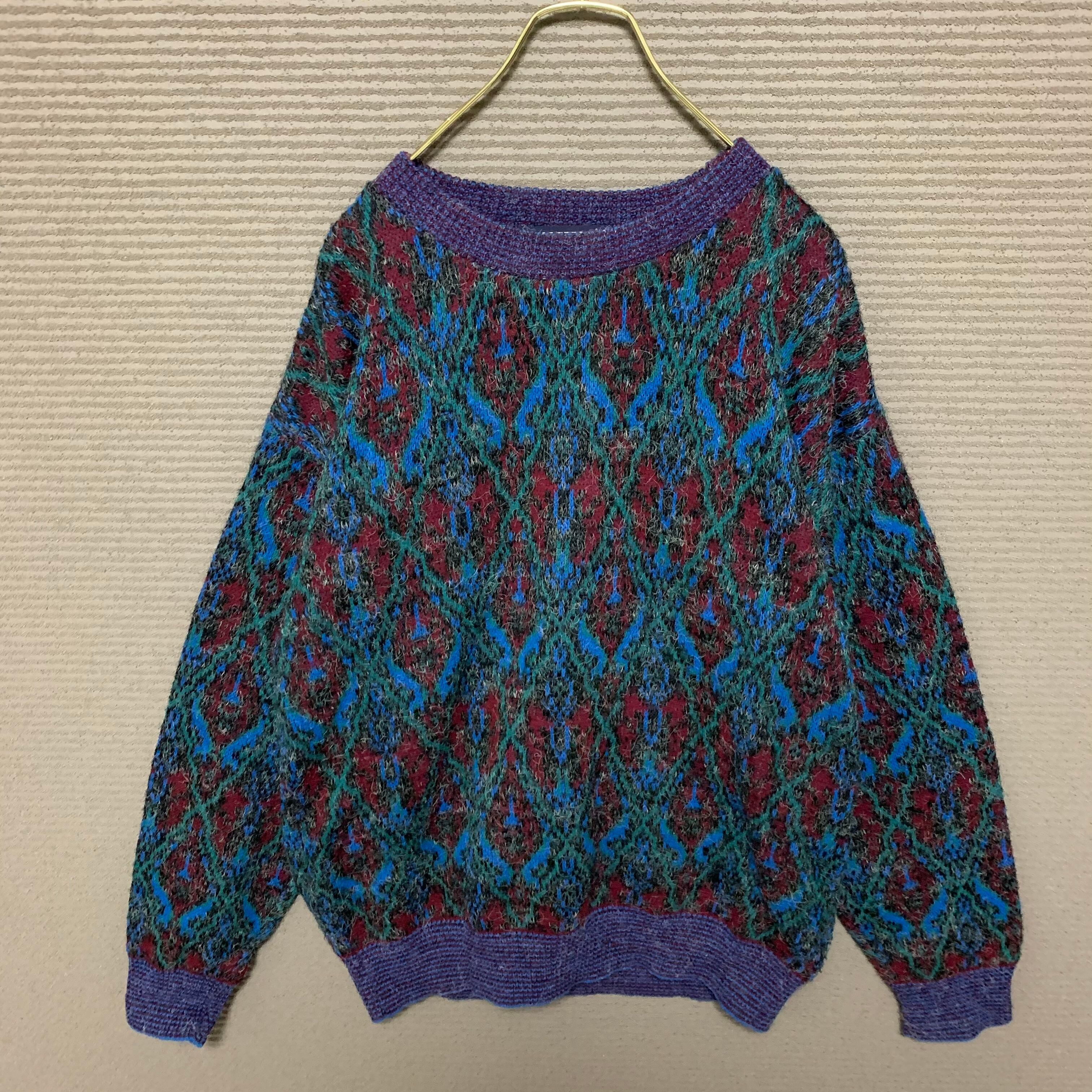 90s USA製 puritan ニット 総柄 マルチカラー クレイジーパターン レトロ 長袖 ゆるだぼ ビッグシルエット アメリカ古着 ヴィンテージ used 古着 L になっております。