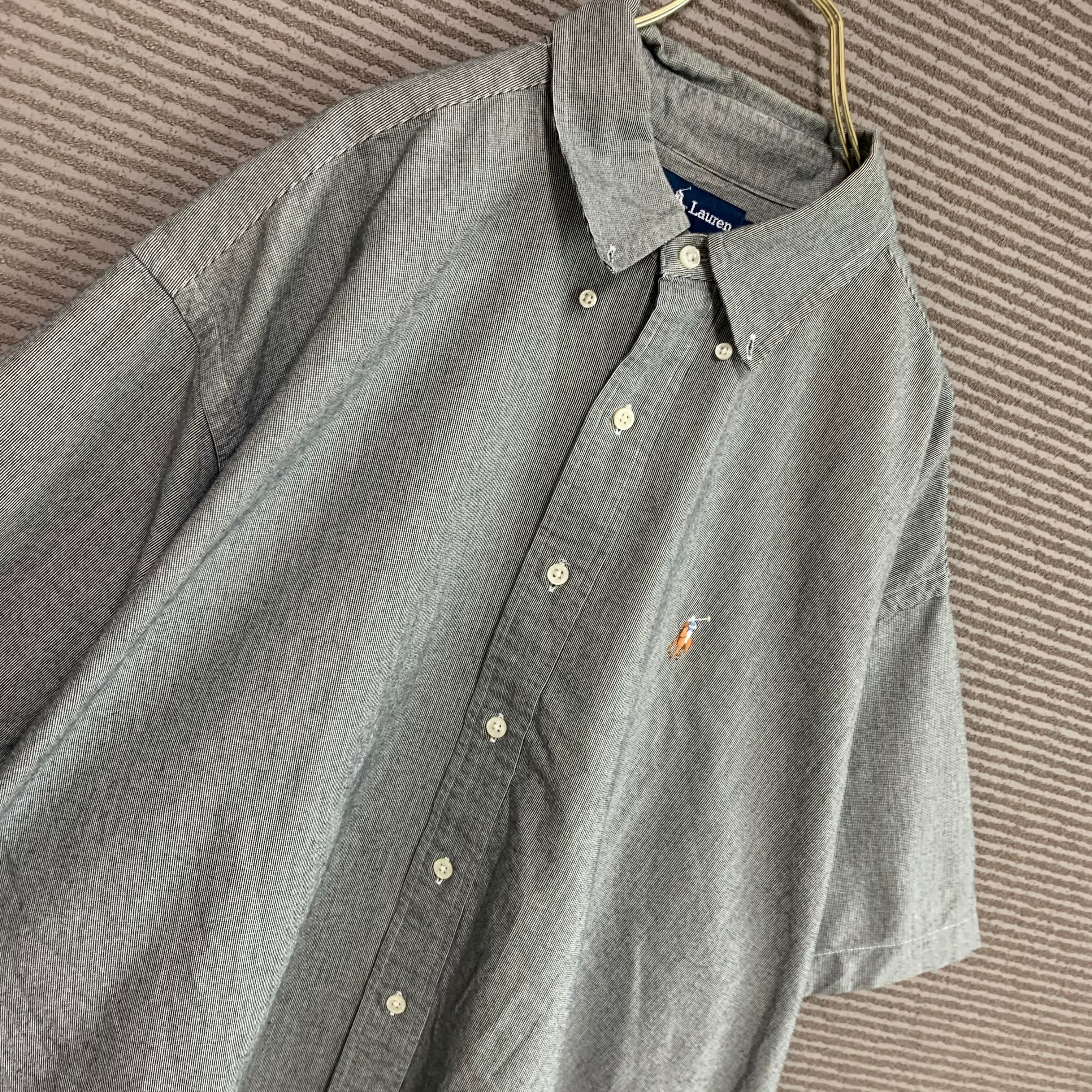 90s BLACK Ralph Lauren ラルフローレン BDシャツ ボタンダウンシャツ 半袖シャツ 刺繍ロゴ ワンポイント ゆるだぼ ビッグシルエット 人気カラー 入手困難 アメリカ古着 ヴィンテージ USED 古着 XL になっております。